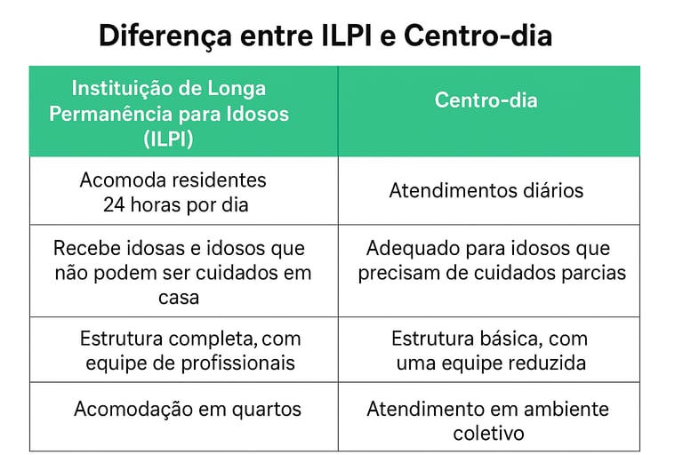 ILPI x Centro-Dia: entenda as diferenças e descubra qual é a melhor opção para seu familiar idoso